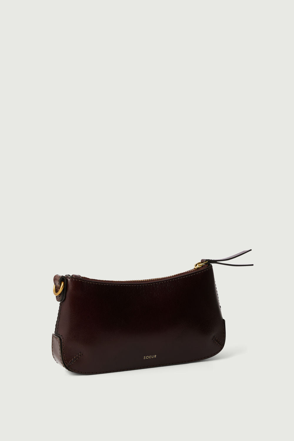 - Glossy Brown Leather Zipped Wallet