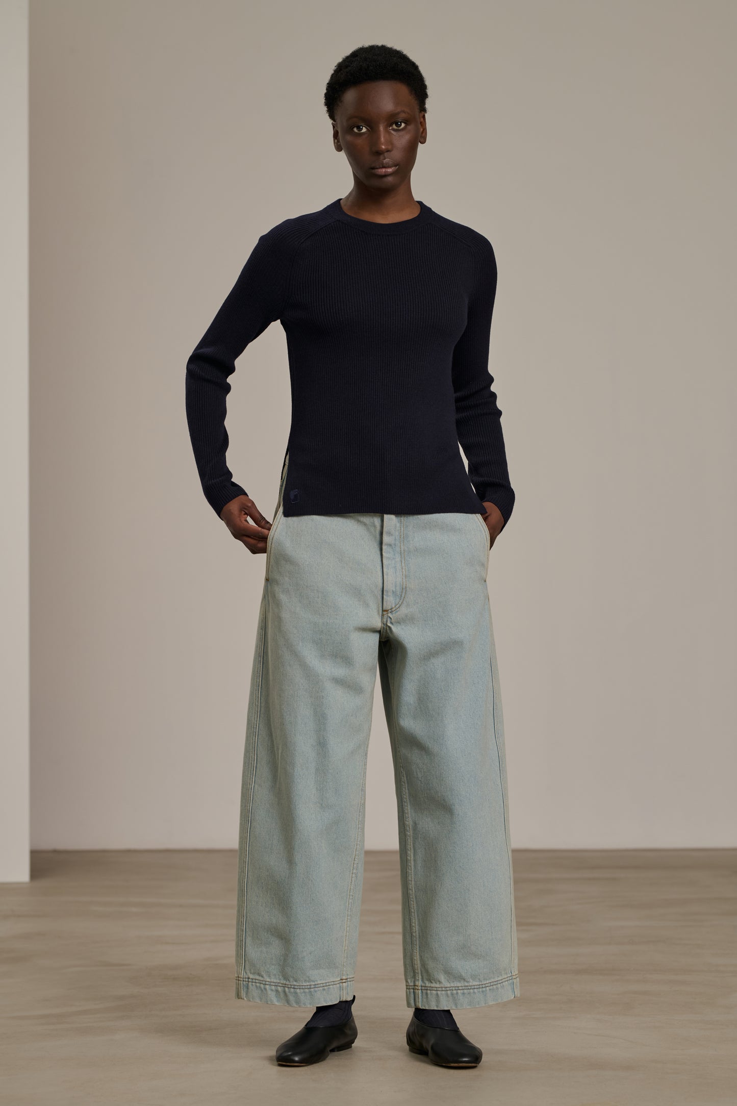 Merino wool ribbed jumper navy